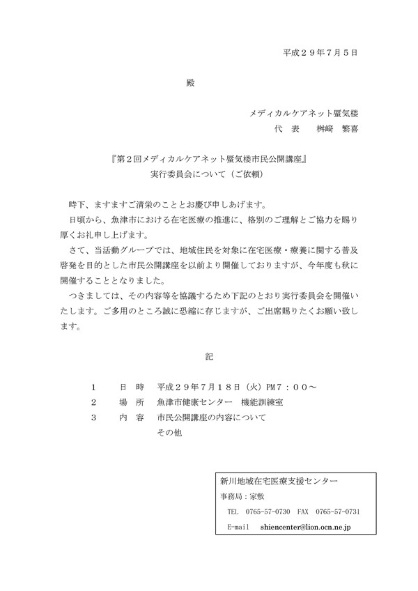 『第2回メディカルケアネット蜃気楼市民公開講座 実行委員会』のご案内(PDF)