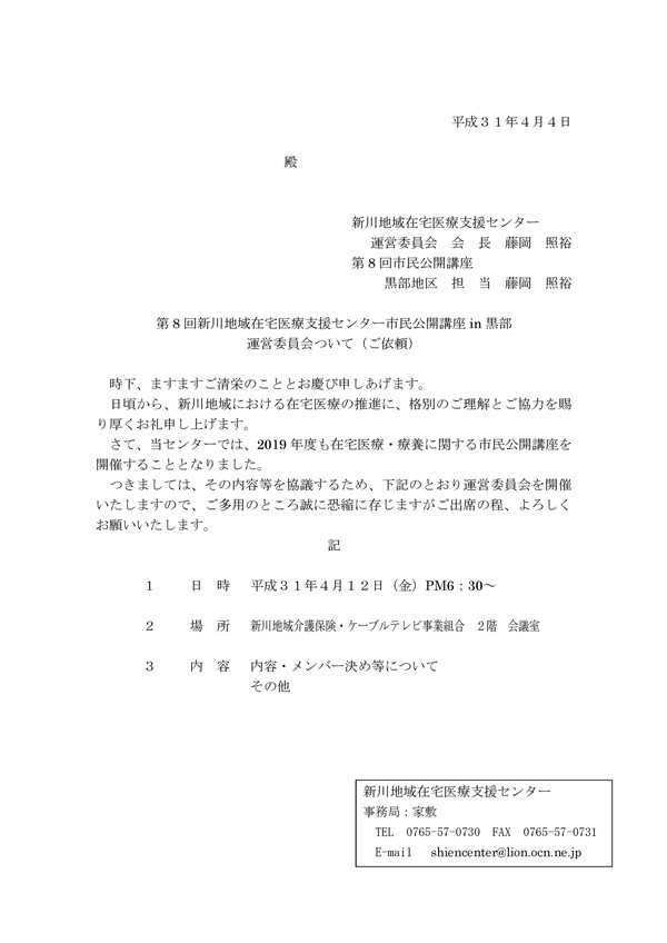 『第8回新川地域在宅医療支援センター市民公開講座in黒部運営委員会』のご案内(PDF)