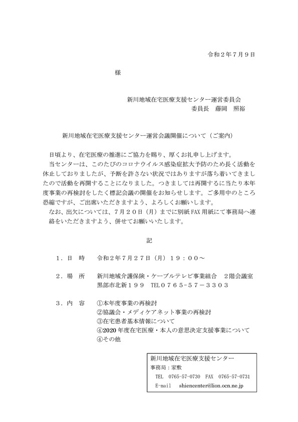 7月27日「新川地域在宅医療支援センター臨時運営会議」のご案内(PDF)