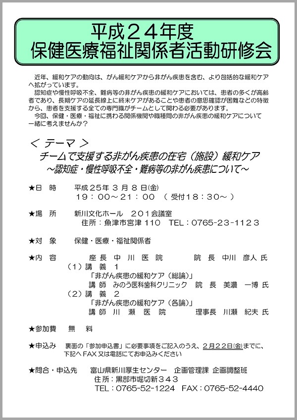 平成24年度新川厚生センター管内 保健医療福祉関係者活動研修会(外部リンク)