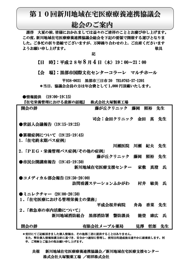 : 8月4日「第10回 新川地域在宅医療療養連携協議会総会」のご案内